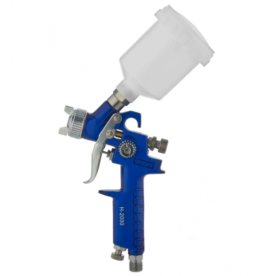 Voylet H-2000 gölge boya tabancasi üstten depoludur. 3 kademeli ayarlanabilir çalişma sistemine sahiptir. Ekonomik ve kullanışlıdır. Profesyonel sınıfta gölge atımına sahiptir. Ağırlığı 345gr. Meme ucu 8mm dir. Hazne hacmi 250ml dir. Çalışma basıncı 3 bar/43 psi dır. Hava tüketimi 230 L/dakikadır.